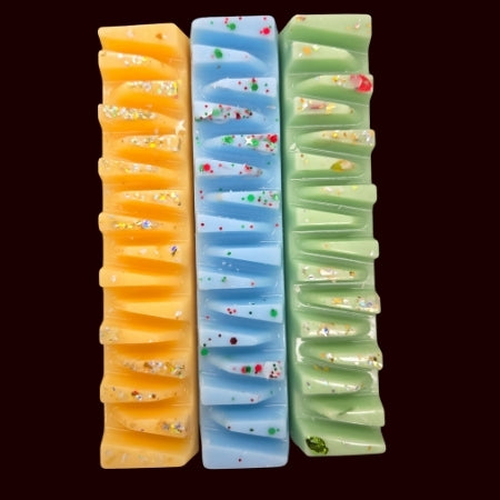 Each bar is packed with chunky glitter that twinkles as it melts, creating a playful, sparkling display. With single-scent formulations, you can enjoy the pure fragrance on its own or blend with other favorites to create your own signature holiday scent experience. Perfect for gifting, sharing, or keeping all to yourself!